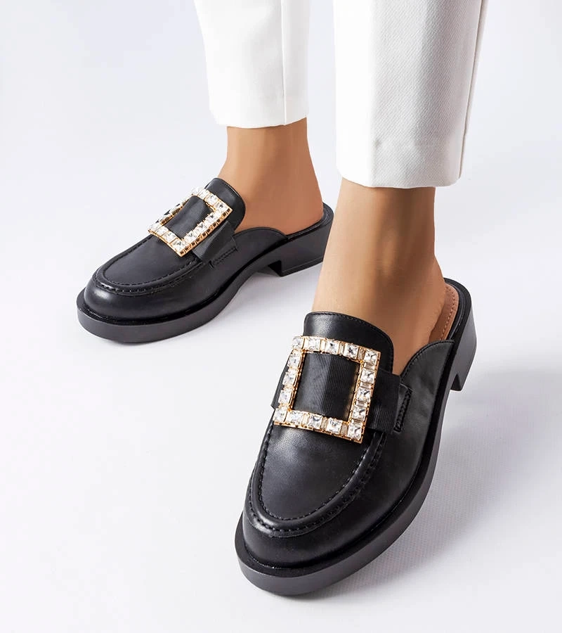 Șlapi negri eleganți cu lanț Patenaude