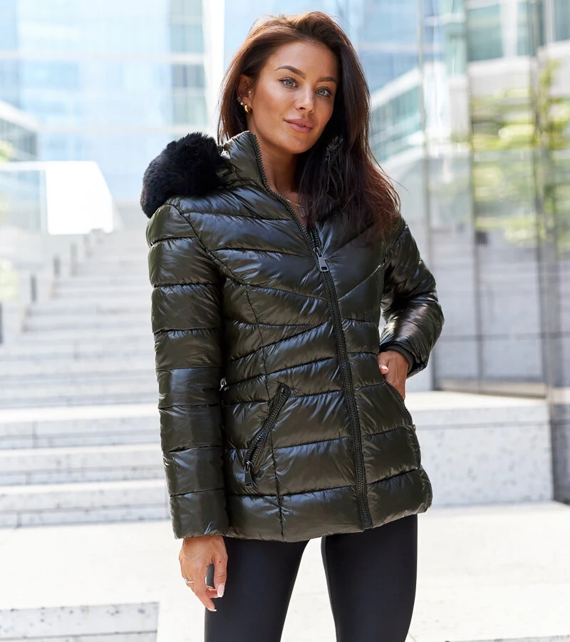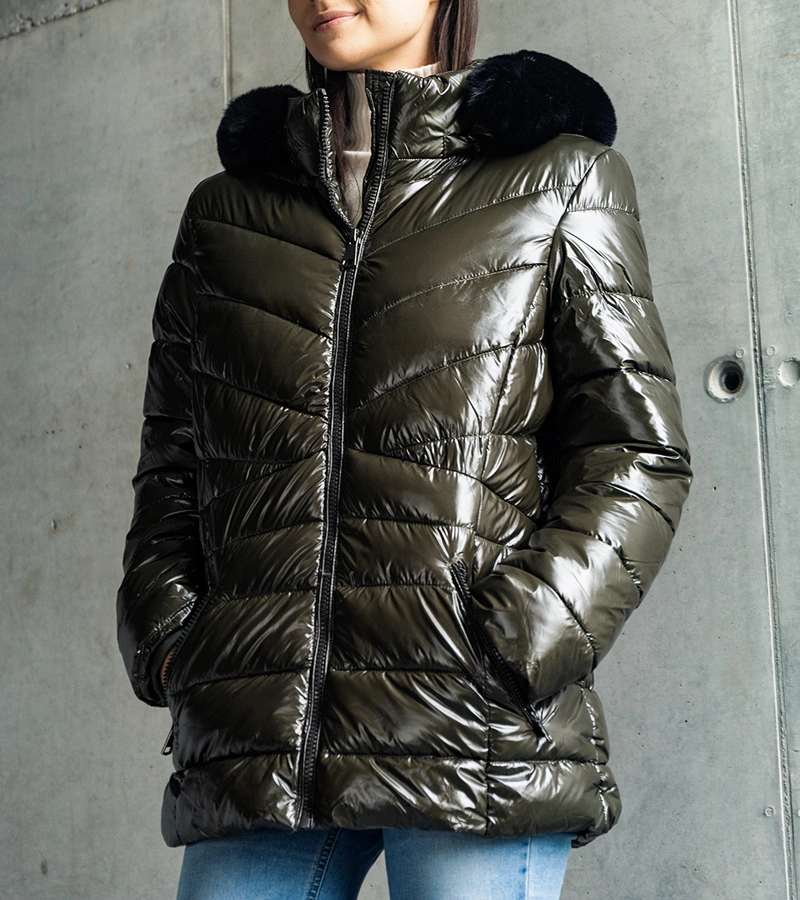 Jachetă lungă albastru marin cu glugă detașabilă Fela