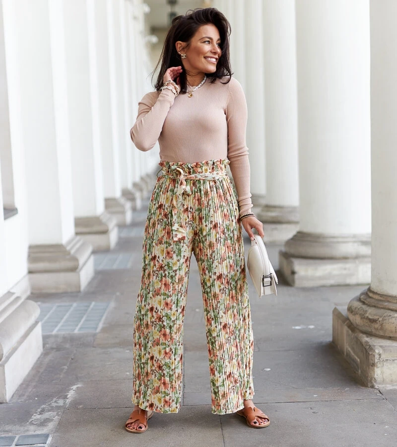 Pantaloni Saida cu pliuri largi multicolore pentru femei