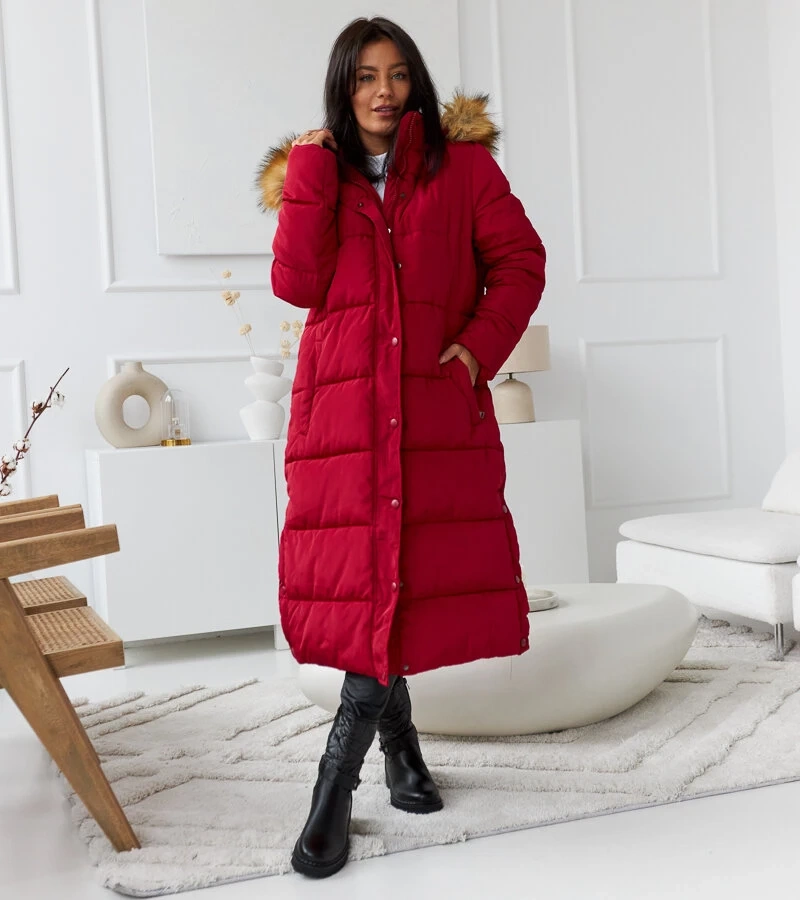 Jachetă lungă roșie cu glugă detașabilă Fela