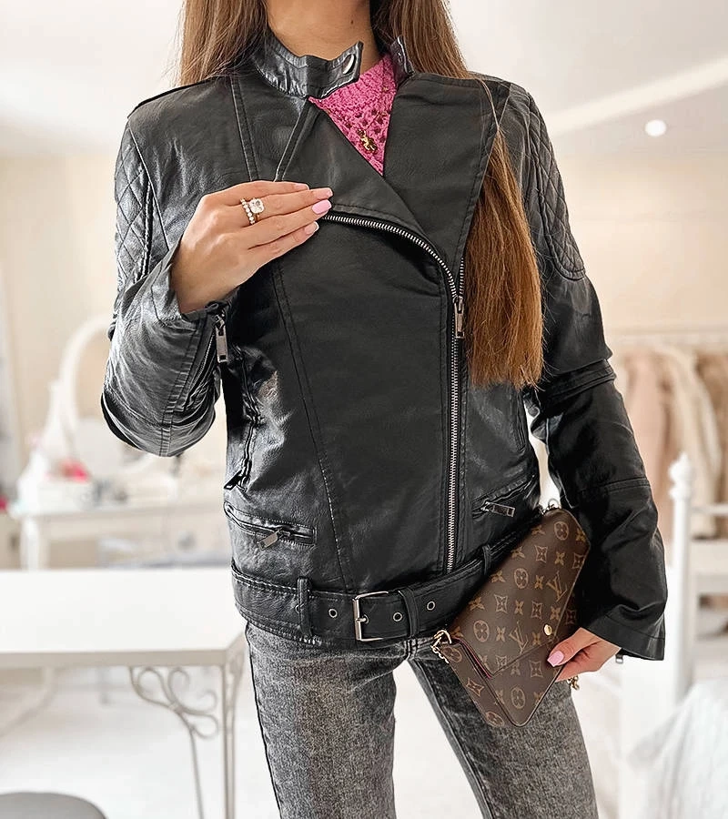 Jachetă ramones din piele ecologică neagră Quennel