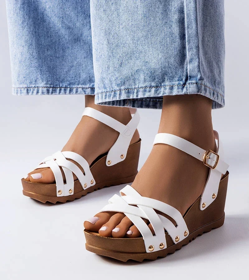 Șlapi stiletto cu tocuri joase Rochefort de culoare albă