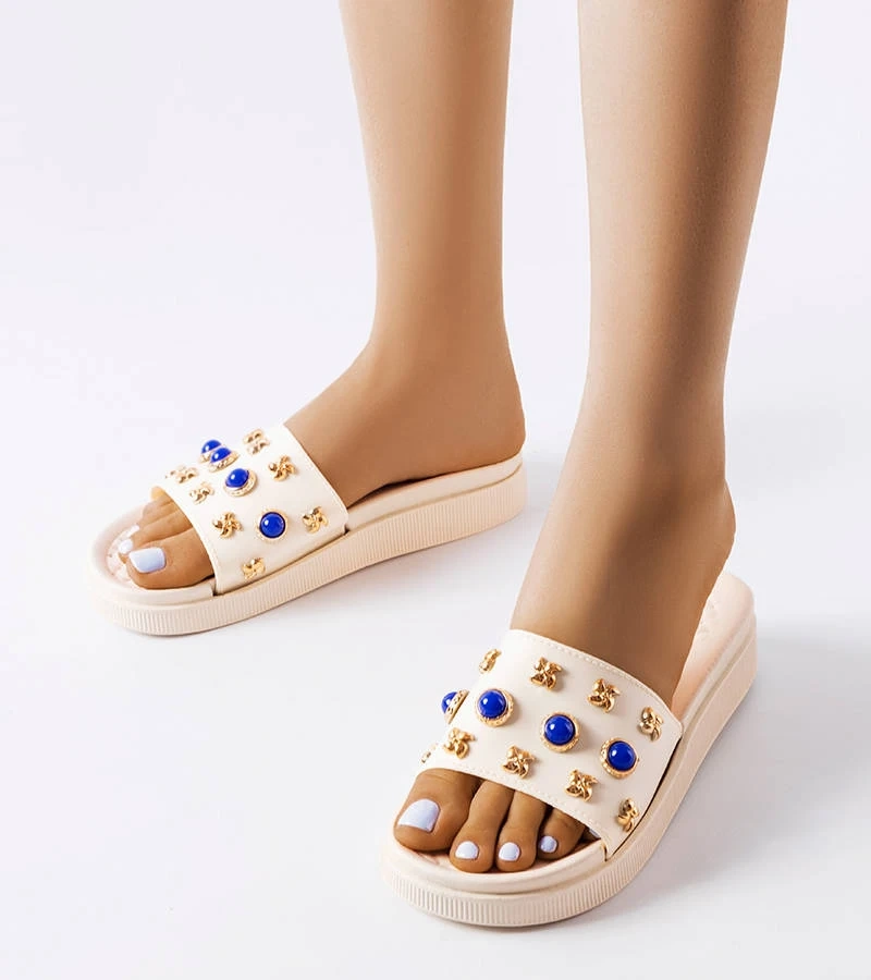 Șlapi bej înfrumusețați cu încrețitură de bulevard