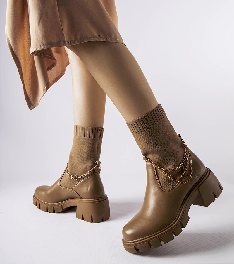 Cizme de culoare bej pe o talpă Coleman solidă