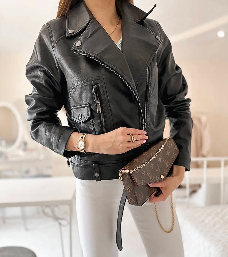 Jachetă neagră din piele ecologică ramones de Chaussée