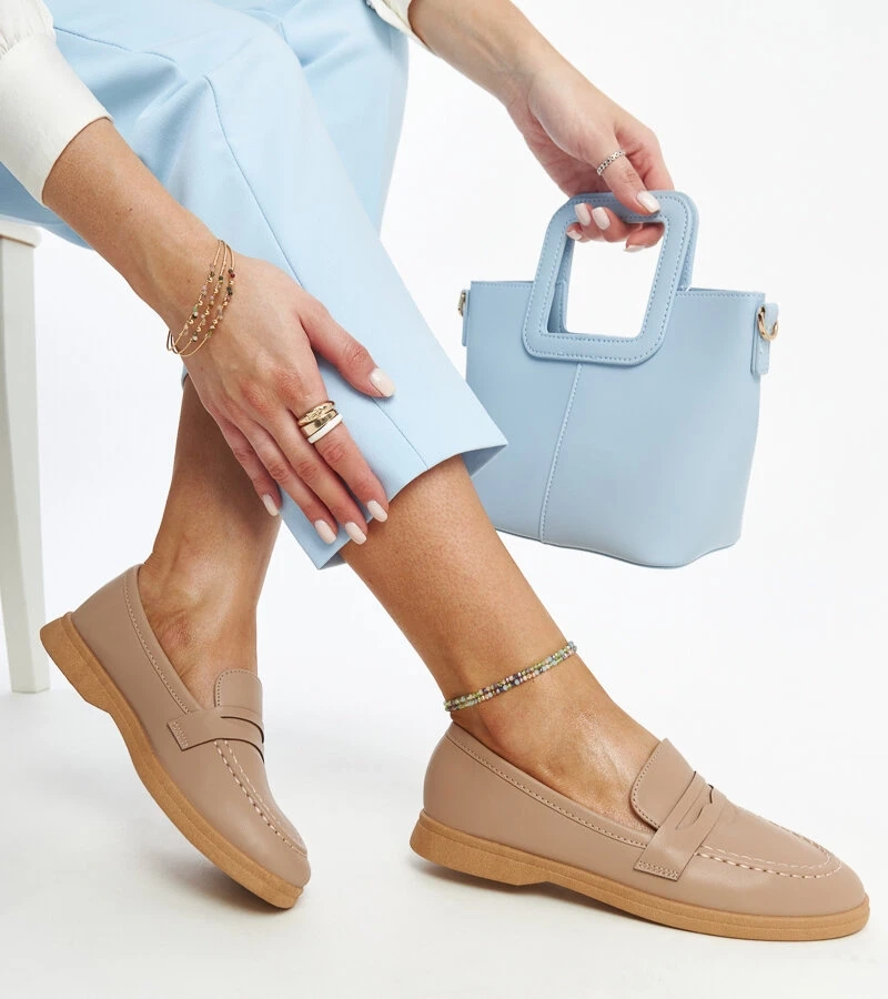 Pantofi semi-închiși din piele de căprioară bej Rumay